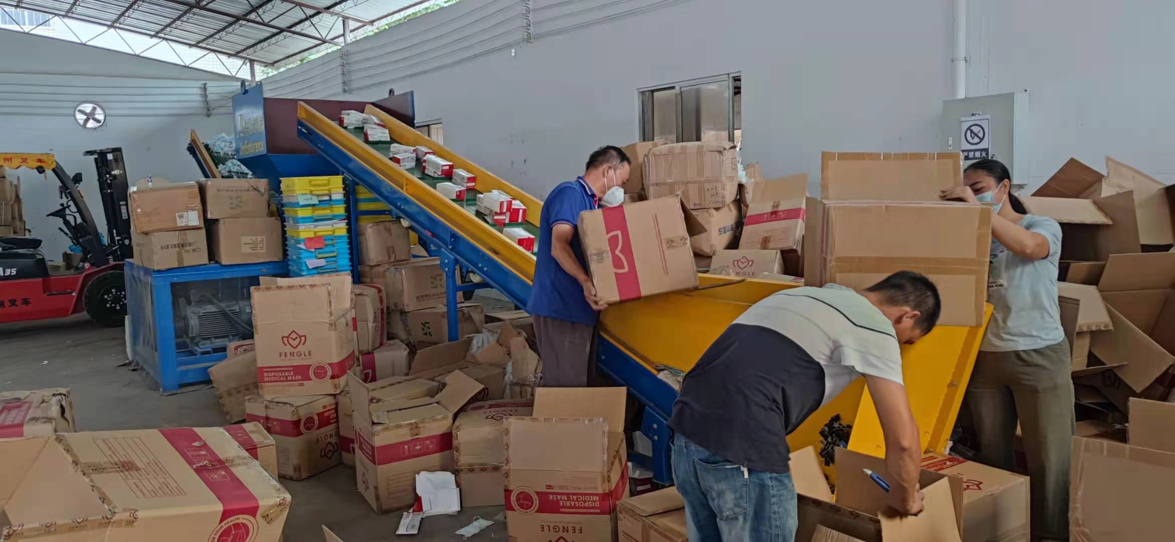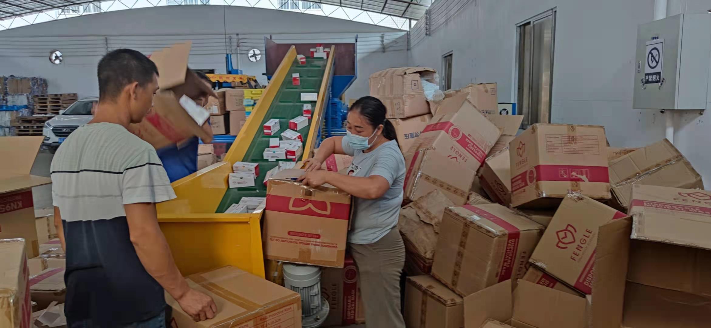 广东丰乐国际供应链有限公司需要销毁一批口罩,重约3吨,此次口罩销毁是有我司广州源宝销毁公司负责,根据要求,我司将对此次需要销毁的口罩进行保密销毁,销毁过程中,不允许有第三方人员在现场,因此在此次销毁处理,并未无第三方人员在场,此次销毁过程历经3小时完成,销毁完成后开具销毁证明以及销毁报告客户才放心离开。