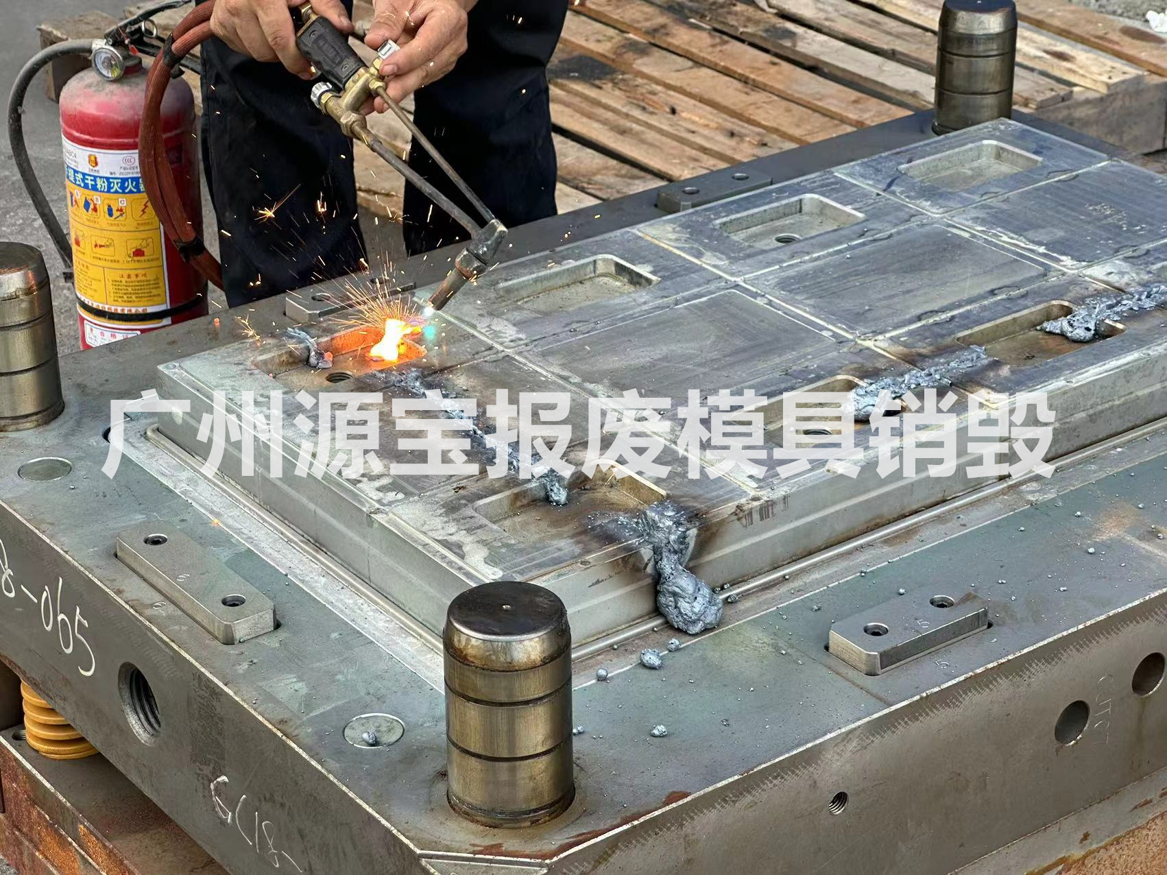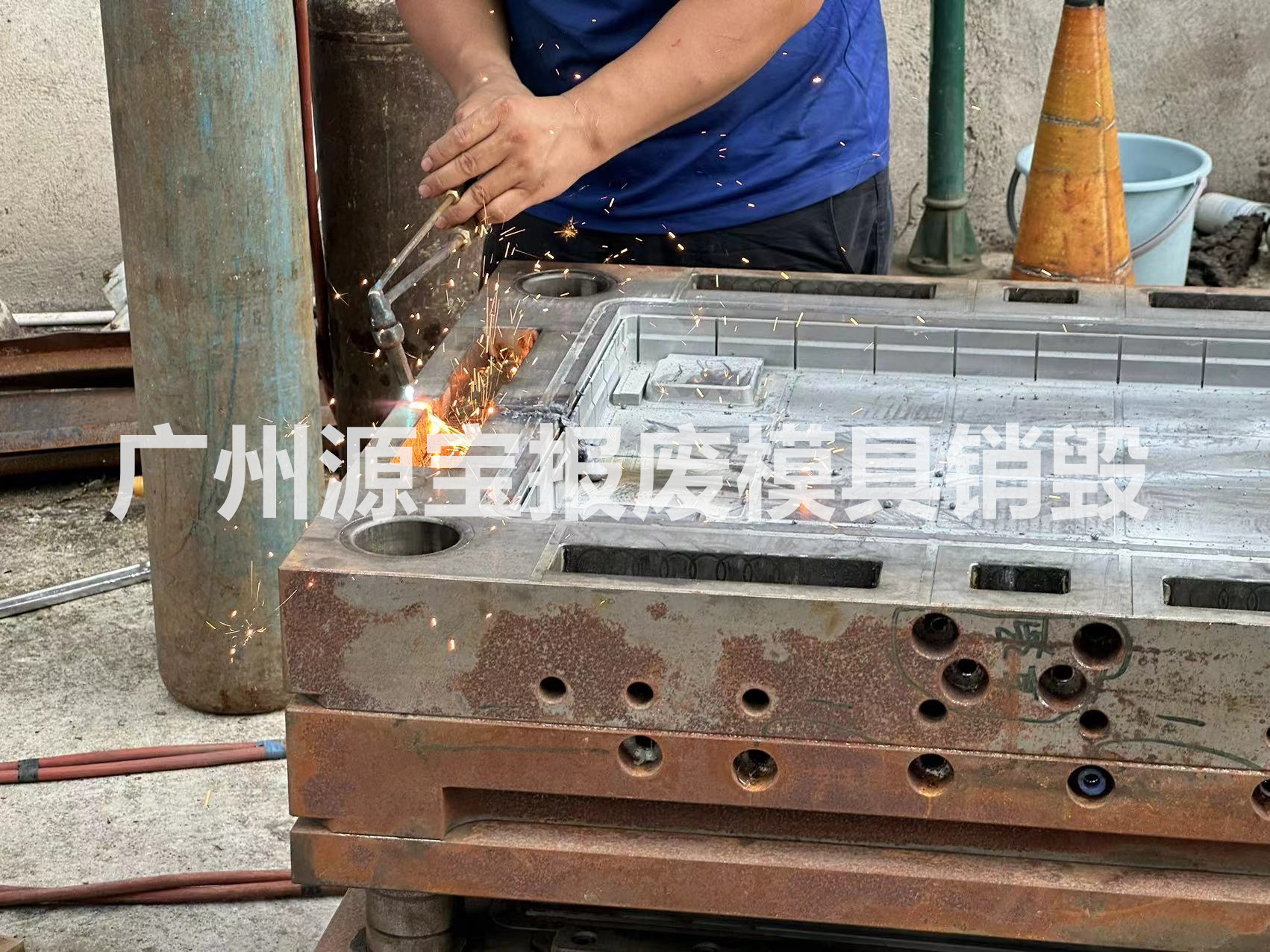 塑胶模具报废销毁,在2024年8月2日深圳某公司委托我们协助销毁一批模具。客户公司位于深圳,当日我们安排车辆上门将报废模具拉至广州源宝模具销毁中心,采用切割方式销毁报废模具。前期和客户沟通确认销毁方式后,我们源宝模具销毁公司专人上门拉货、卸车、拍照、以及录像。报废模具销毁完毕后,客户现场检查销毁的程度。确认销毁无遗漏后,我们当日就提供相关模具销毁证明报告。