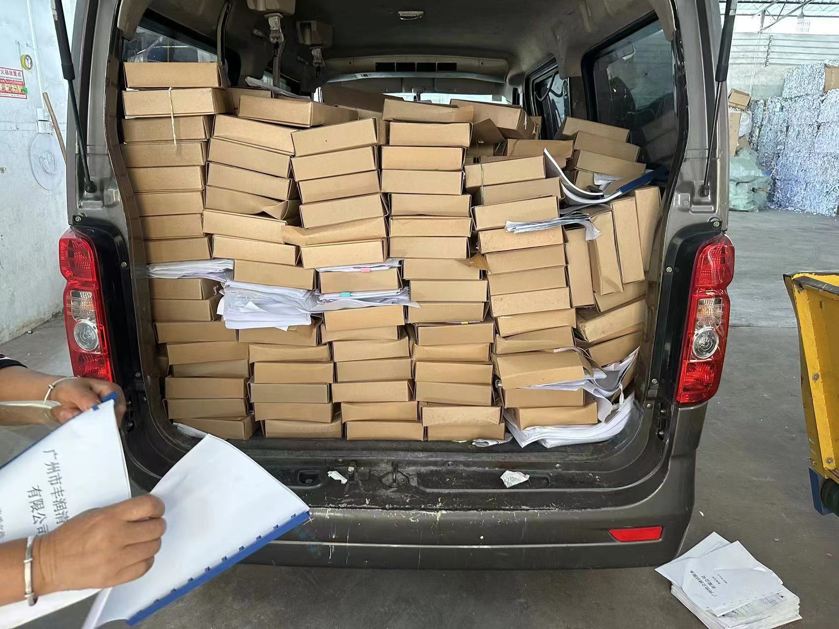近期我们协助一家深圳公司销毁文件资料,销毁资料档案 共计110箱。客户所在公司是在深圳的,通过线上找到我们源宝销毁中心,说明公司需求销毁文件后,我们通过线上沟通确定了销毁流程方案与时间。销毁当天,我们派工作人员开车上门提供免费的打包服务,客户跟车来到我们源宝深圳文件档案销毁厂区,到达之后工作人员立马进行卸货分拣销毁,整个过程都有监控录像,共计耗时1小时。文件档案销毁结束后,我们开具了相关的销毁证明和销毁报告给到客户。